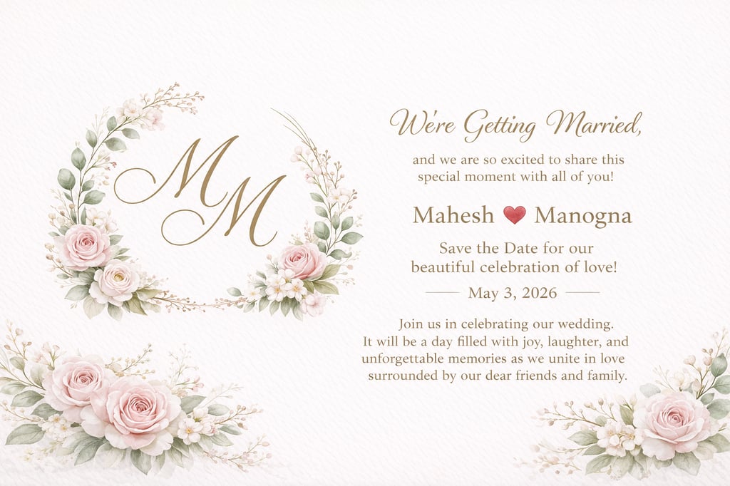 With immense joy and gratitude in our hearts, we invite you to celebrate one of the most meaningful moments of our lives. Our wedding marks the beginning of a beautiful new chapter in our journey together, and we feel truly blessed to share this special day with the people who have supported and cherished us along the way.